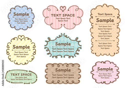 フリーハンドで描いたくるくるしたパステルカラーのかわいいフレームのセット
