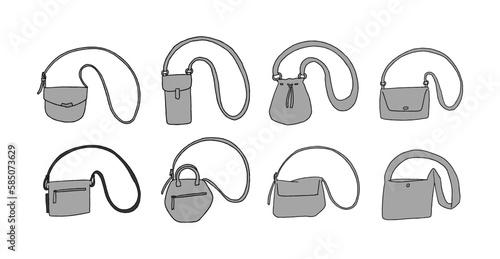 グレーのショルダーバッグのイラストセット