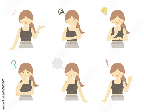 スポーツウェア 女性 ポーズ バリエーション イラスト _ ベクター 素材 セット かわいい