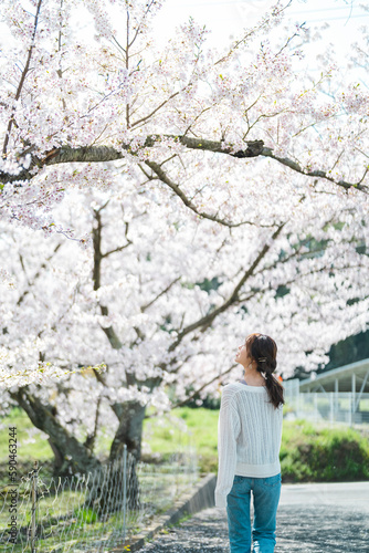 桜と女性