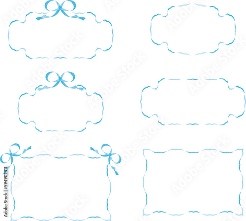 水彩 リボン エレガント フレーム 額 アンティーク ビンテージ 飾り枠 イラスト素材セット 水色