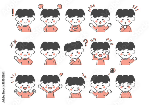 女の子の表情とポーズのイラストセット