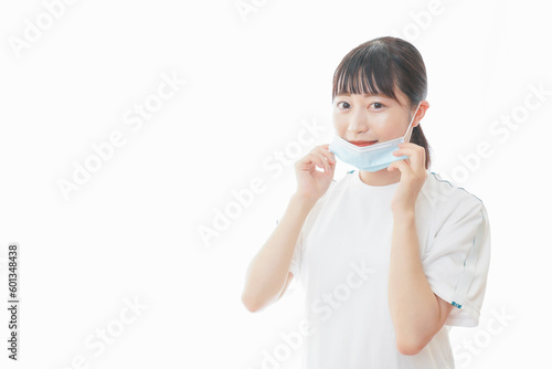 マスクをつけてランニングをする若い学生