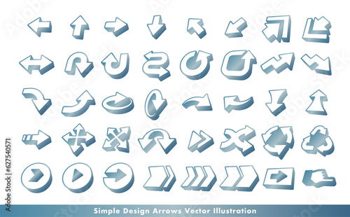 シンプルでクールな立体の矢印・方向指示記号のアローベクターアイコンイメージセット_シルバー・グラデーション・金属質