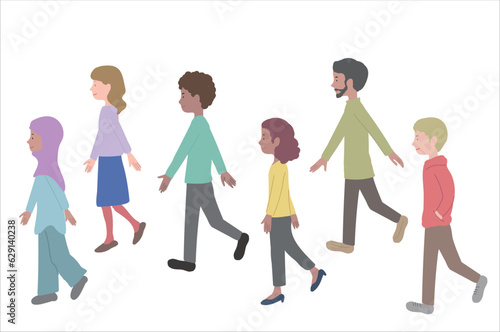 様々な人種の歩く人々のイラスト