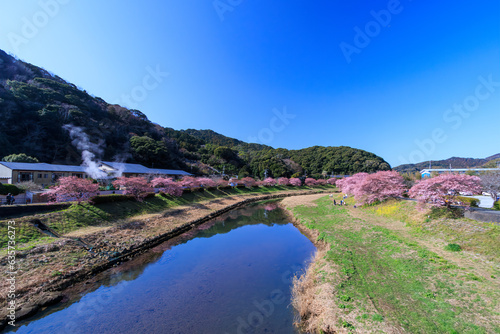 美味しい河津桜と菜の花の景色 静岡県賀茂郡下賀茂、みなみの桜と菜の花まつり