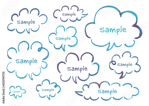 水彩絵の具で描いた水色の手描き吹き出し素材セット
