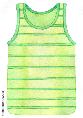緑色のボーダー柄の子供用肌着(ノースリーブ)のイラスト