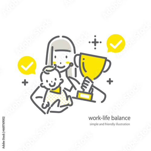 仕事とプライベートを両立する女性 シンプルでお洒落な線画イラスト