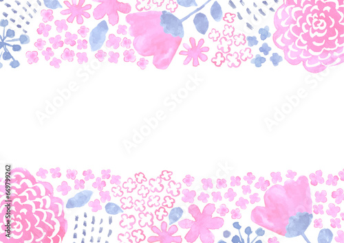 水彩で描いた北欧風のピンクの花柄のフレーム