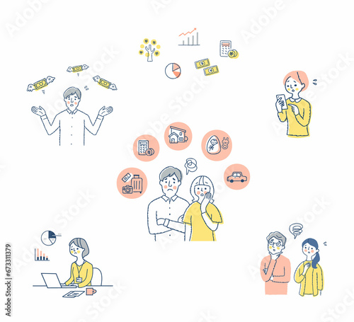 お金・投資・資産運用関連 困った表情の人々 セット