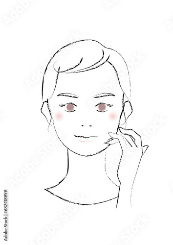 美容イメージ 手を添えてほほえむ女性の正面顔イラスト