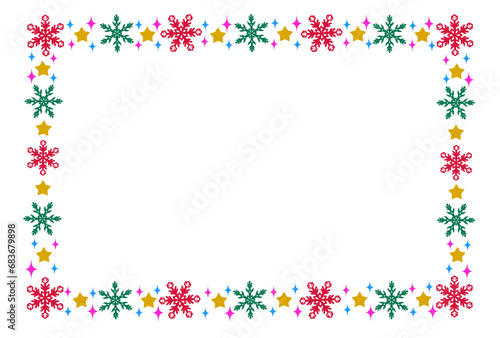クリスマスイメージのおしゃれなフレーム 雪の結晶 素材 シンプル 飾り枠 飾り罫