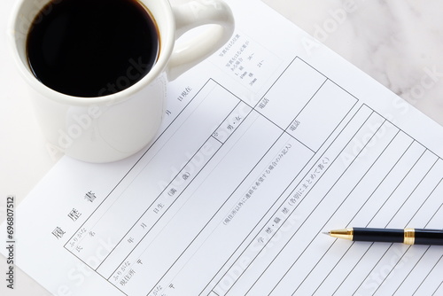 コーヒーを飲みながら履歴書を書く