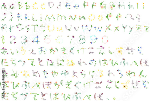 かわいい手書き風の花文字(アルファベット、ひらがな、数字)