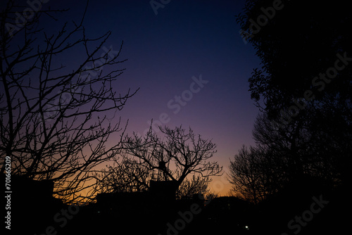 夕暮れと木々のシルエット