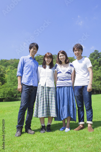 公園で微笑む若者達