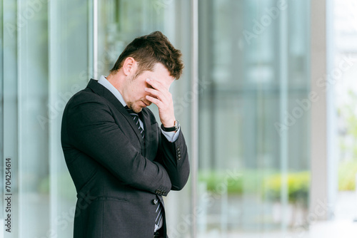 トラブルで悩む外国人ビジネスマシン(白人男性)