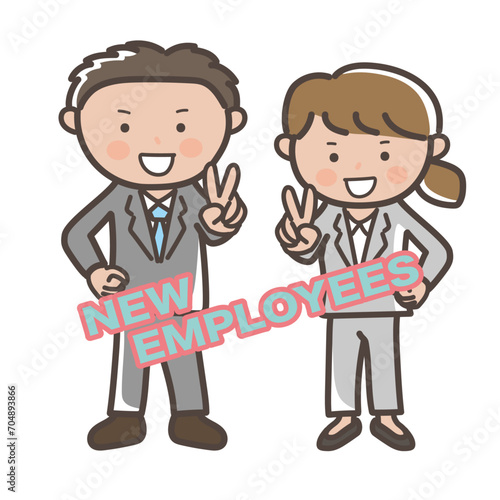 笑顔でピースをする新入社員のイラスト