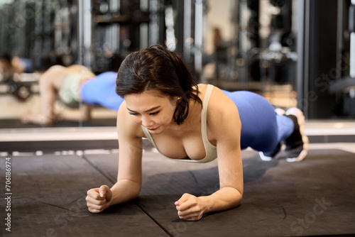 フォアアームプランクで体幹を鍛える女性