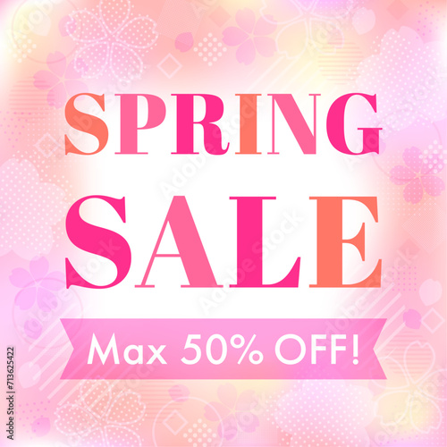 桜の花のピンクオレンジのグラデーションのスプリングセールのバナーテンプレートデザイン