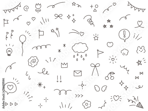 シンプルな飾りのベクターイラストセット。花、ハート、かわいい、イラスト