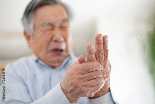 指関節の痛みに悩むシニア、日本人の男性