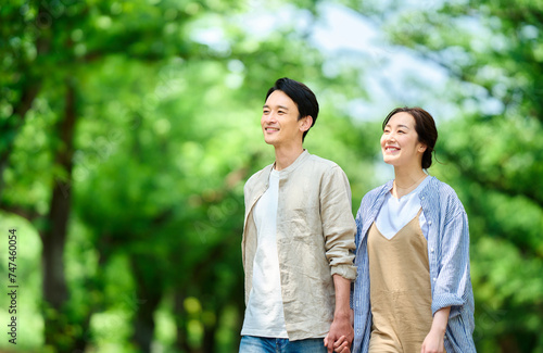初夏の公園を散歩するカップル