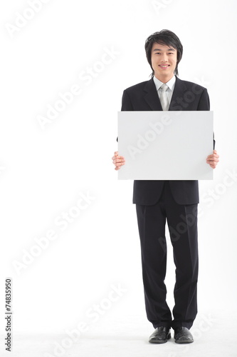 보드를 잡고 보여주는 아시안 비즈니스맨
