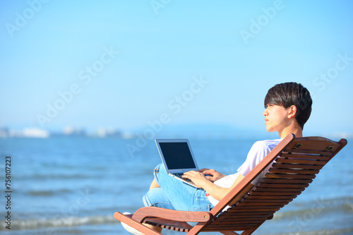 ワーケーションする男性