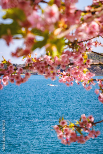河津桜と瀬戸内海の風景