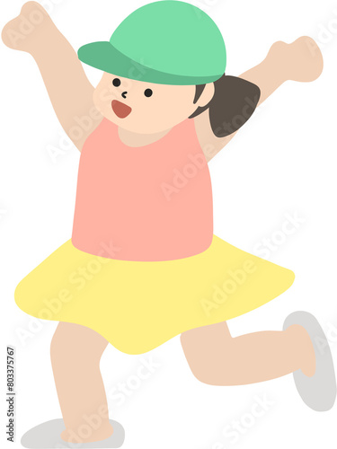 반팔과 치마를 입고 모자를 쓴 여자아이