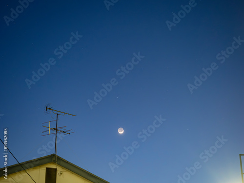 夕暮れの空の細い月