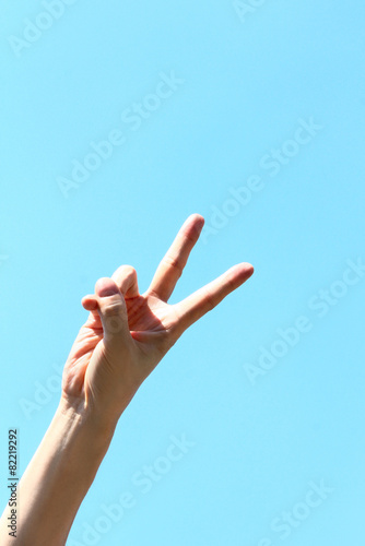 青空にピースサイン
