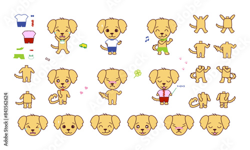 色々な表情やポーズの、直立したかわいいイラストの犬