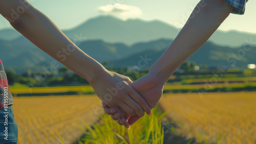田舎で手を繋ぐカップル