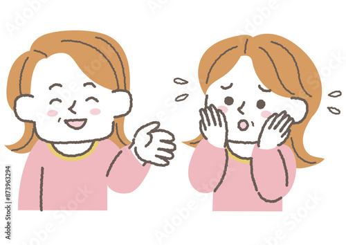 喜んでいる女性と不安を感じている女性のセット