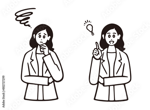 スーツを着た女性の疑問と解決 線画
