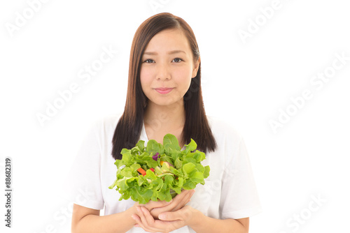 サラダを食べる女性