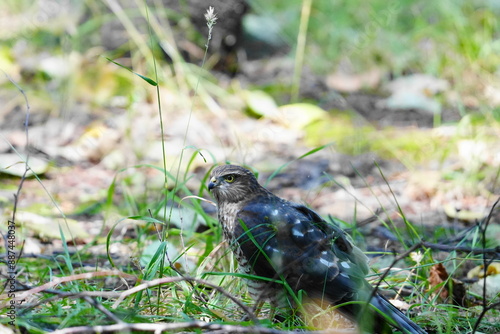 地面に降りたハイタカ