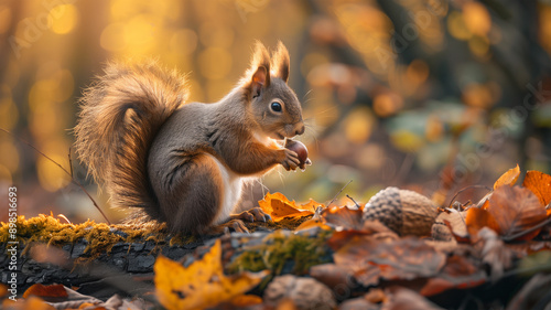 どんぐりを持つリス