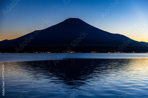 山梨県 山中湖から望む夕暮れの富士山