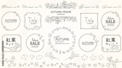 秋のボタニカルフレーム素材セット ( 見出し タイトル フレーム イチョウ 楓)
