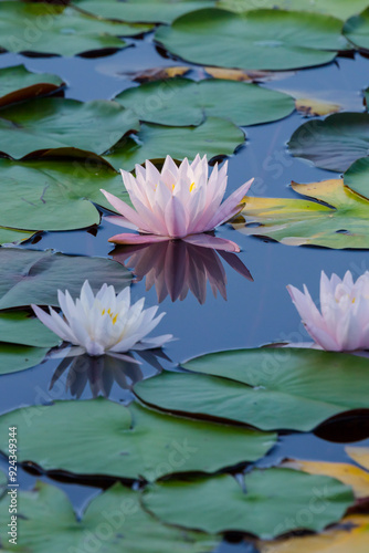 スイレンの花咲く夏の池の風景 鳥取県 多鯰ヶ池