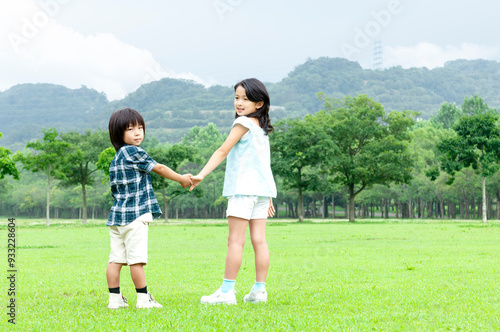 手をつなぐ男の子と女の子