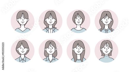 様々な女性のアイコンイラストセット