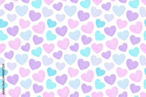 キラキラしたグリッターテクスチャーのハートのシームレスパターン、背景透過