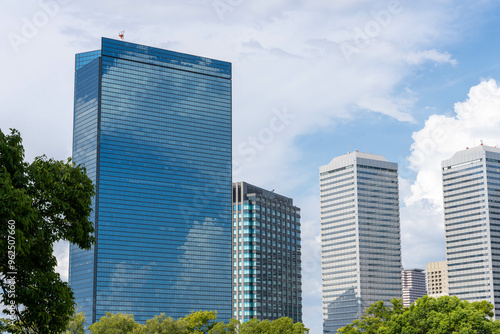青空が映る高層ビル 大阪