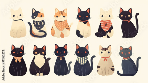 【背景素材】カラフルでポップな猫のイラスト素材,空想,かわいい,シンプル,