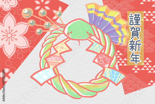 横向き 巳年の年賀状テンプレートデザイン《朱》